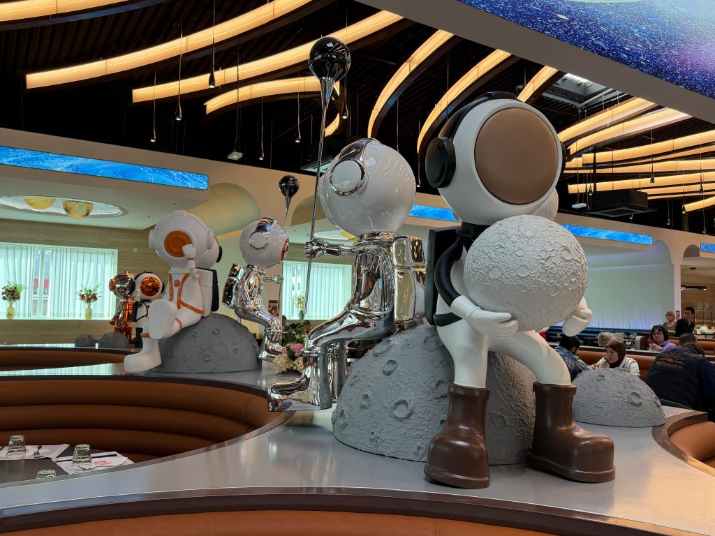 Ce resto joue la carte de la variété à grande échelle. On parle d’une quantité très importante de plats, et d’un mix cuisines européennes et asiatiques qui donne l’impression de ne jamais arriver au bout. Tu penses avoir fait le tour, tu avances encore, et il y a toujours autre chose à découvrir.
